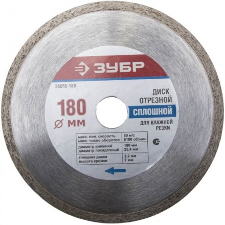 Круг отрезной алмазный для электроплиткореза, ЗУБР, 36655-180